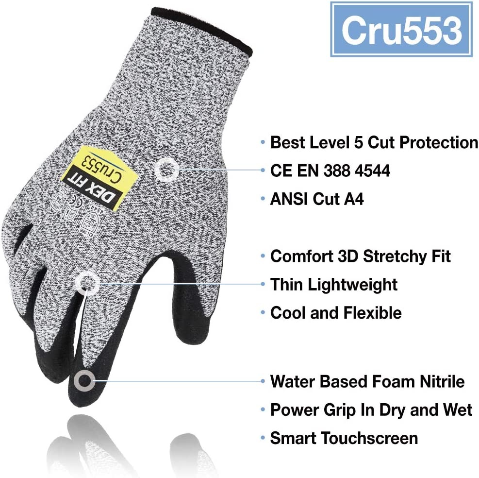 Be the first to review “DEX FIT | Level 5 Cut Resistant Gloves Cru553, 3D-Comfort Fit, Firm Grip, Thin & Lightweight, Touch-Screen Compatible” Cancel reply