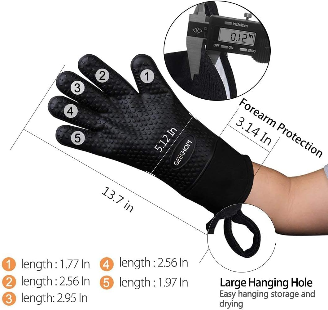 2. 【DUAL-LAYER DESIGN.】 This BBQ gloves is designed with an outer silicone glove and inner heat-resistant cotton layer, comfortable and moisture wicking, maximize your