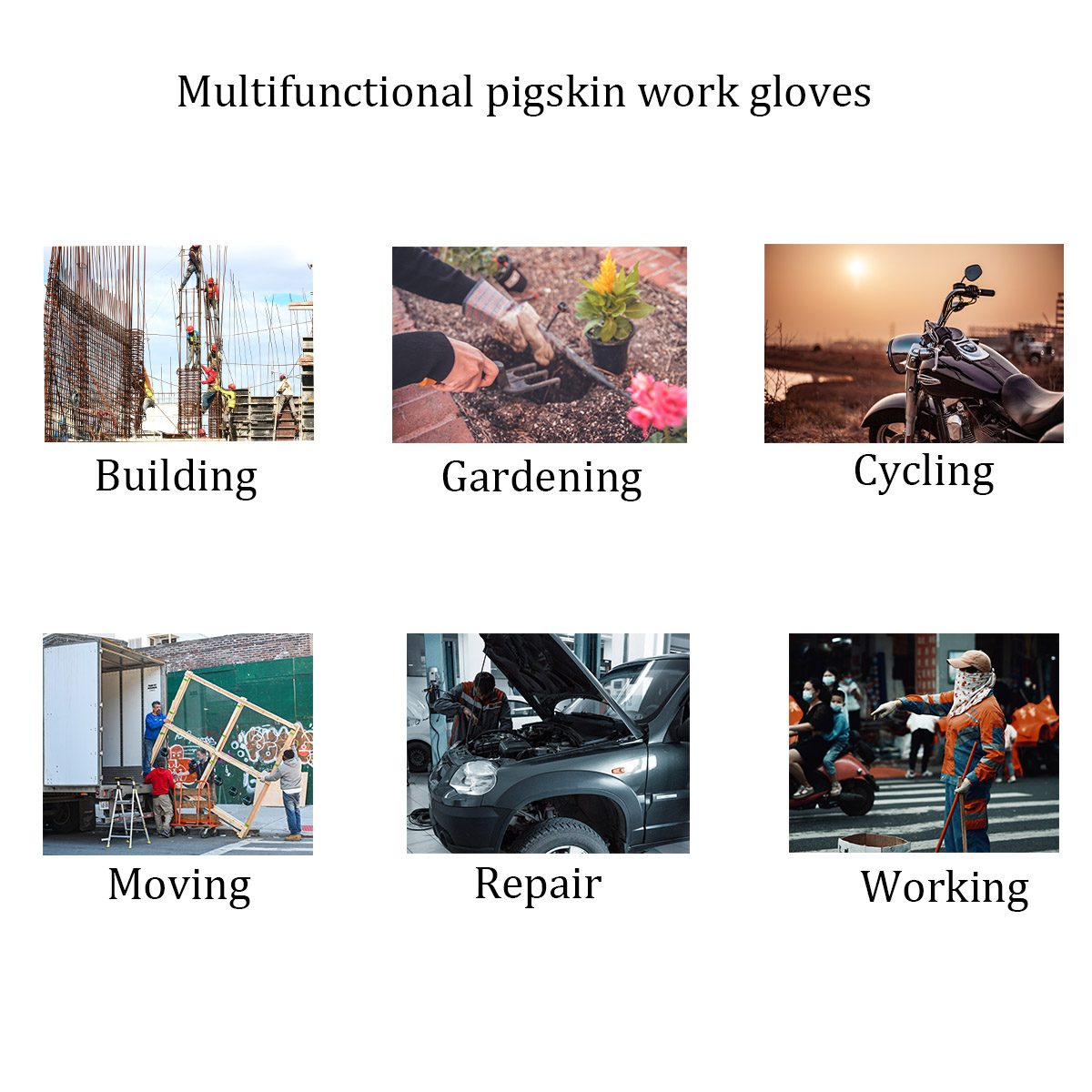 High-quality microfiber work gloves made of first layer pigskin and microfiber, which is comfortable and wear resistant. This glove ideal for building construction, car repair, mechanic work, etc.