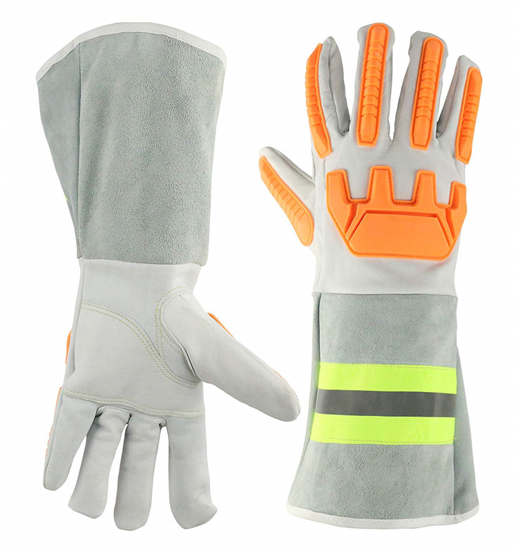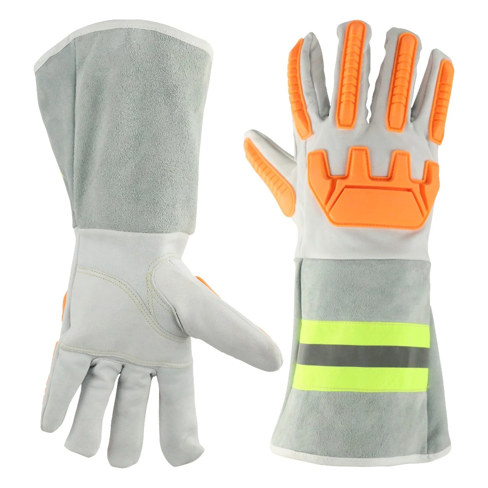 High Visibility Welding Gloves With Reflective Strip Heat and Fire Resistant Reflective Cut Resistant Safety Gloves